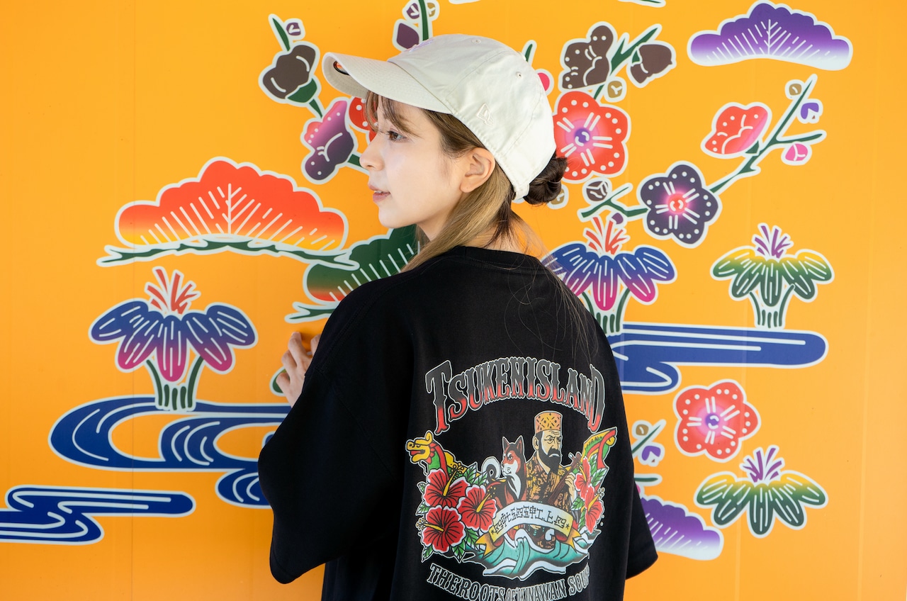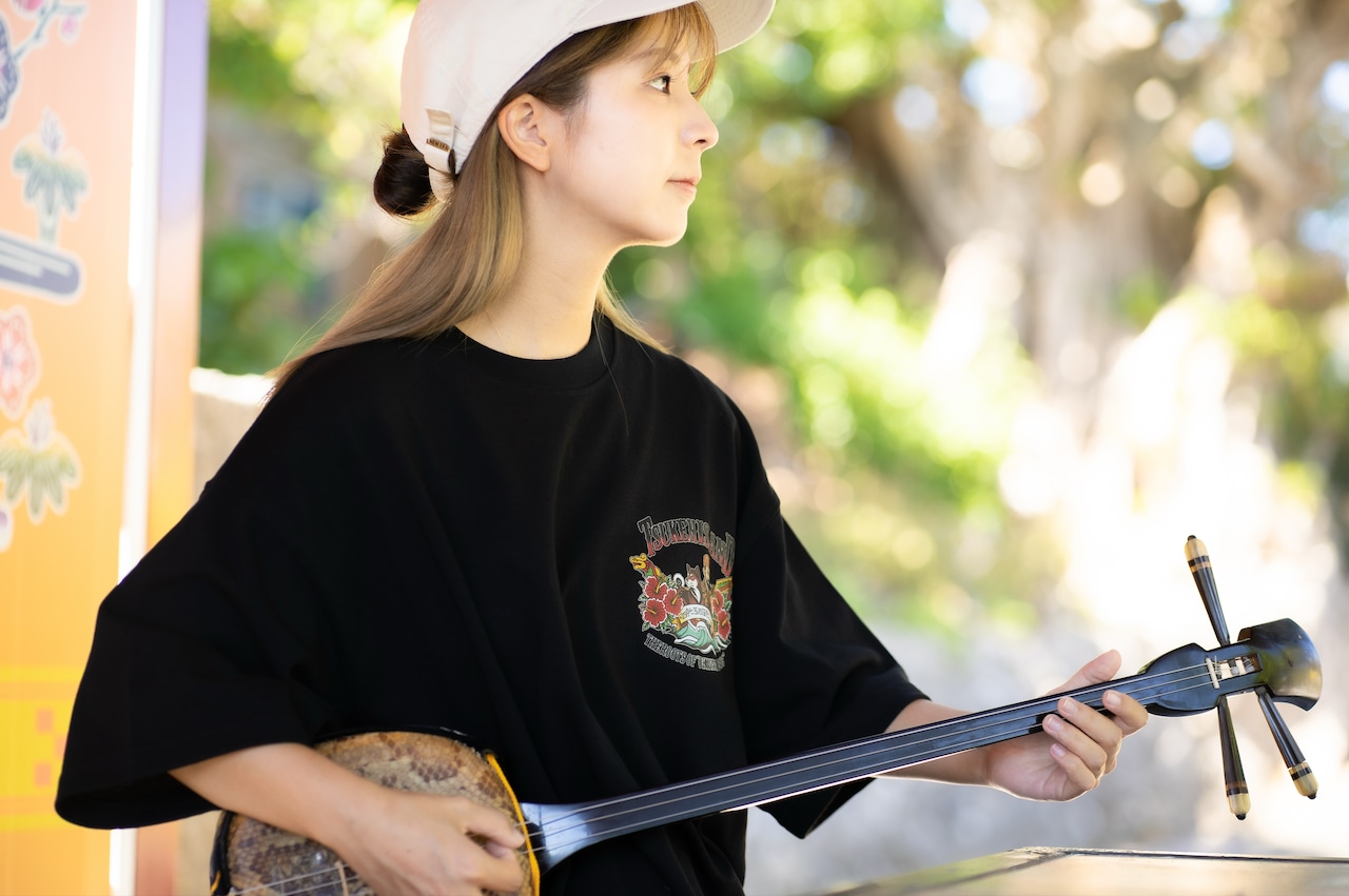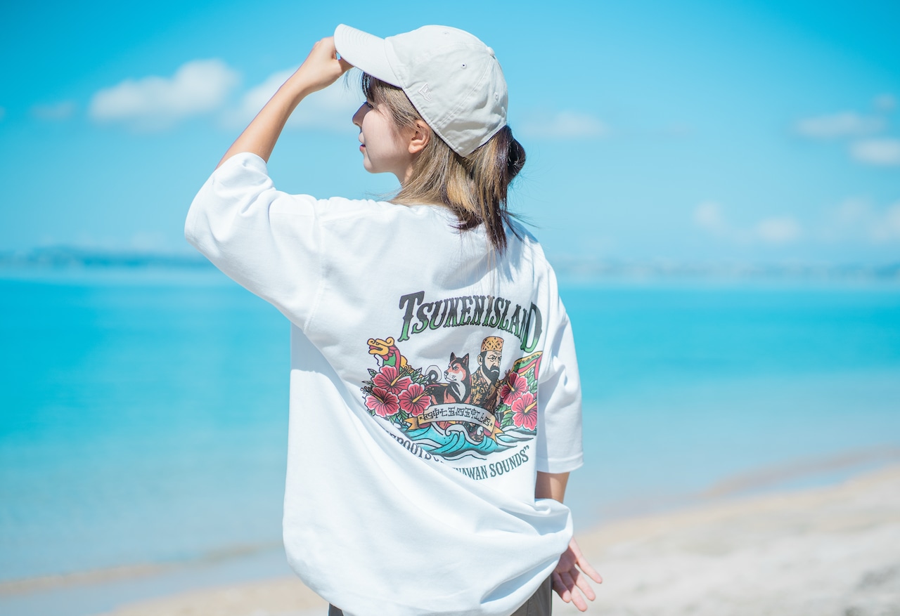沖縄三線の始祖と呼ばれる偉人〝赤犬子〟津堅島で生を受けたという伝説をもとに、津堅島を〝沖縄音楽発祥の地〟と捉えたデザイン。赤犬子が残した谷茶の船はよく走るという伝説や、読谷村の水不足を解消した赤犬伝説がデザインのもとになっている。